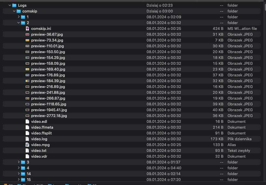 There are no preview jpg files in the comskip log directories.