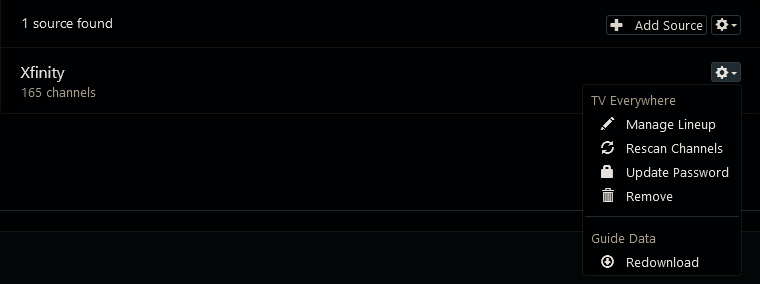Open the dropdown next to your TVE Provider source on the Channels DVR web UI and select Rescan Channels