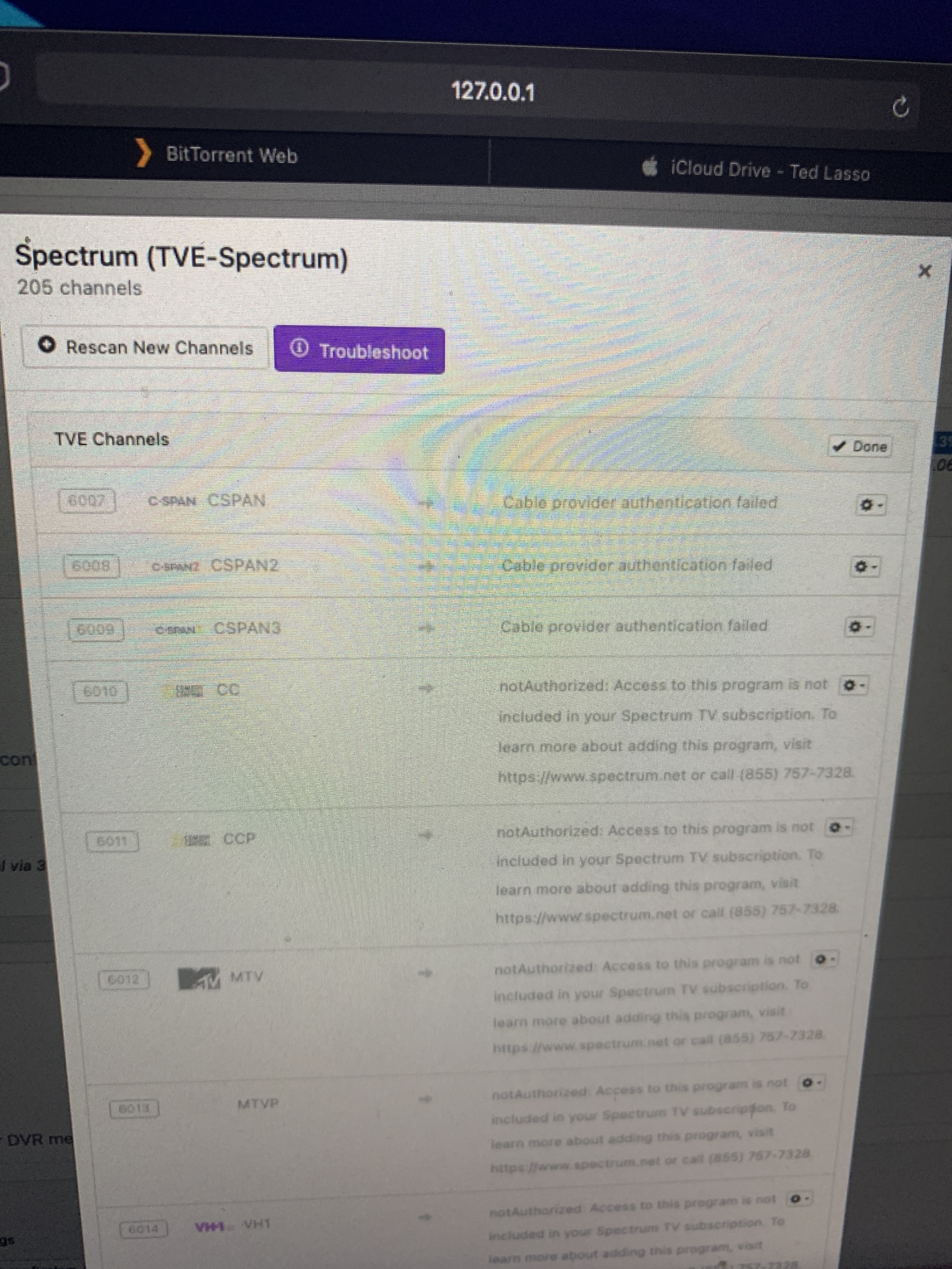 In the view of Manage Lineup. The cspan channels are blanked out cable not authenticated. And when I click again after I close. It doesn't appear at all again.