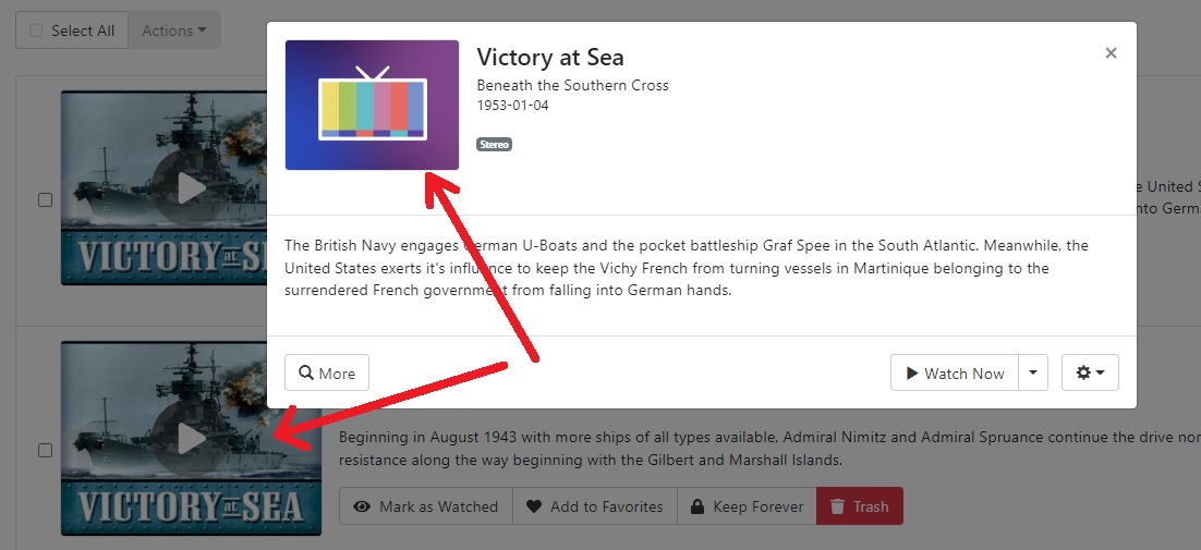 I've also noticed if I go to the show using the server interface, the overall custom image and episode custom images appear normally. However, if I go to the manage tab and go to the show that way, it only shows the internet download image for each episode.