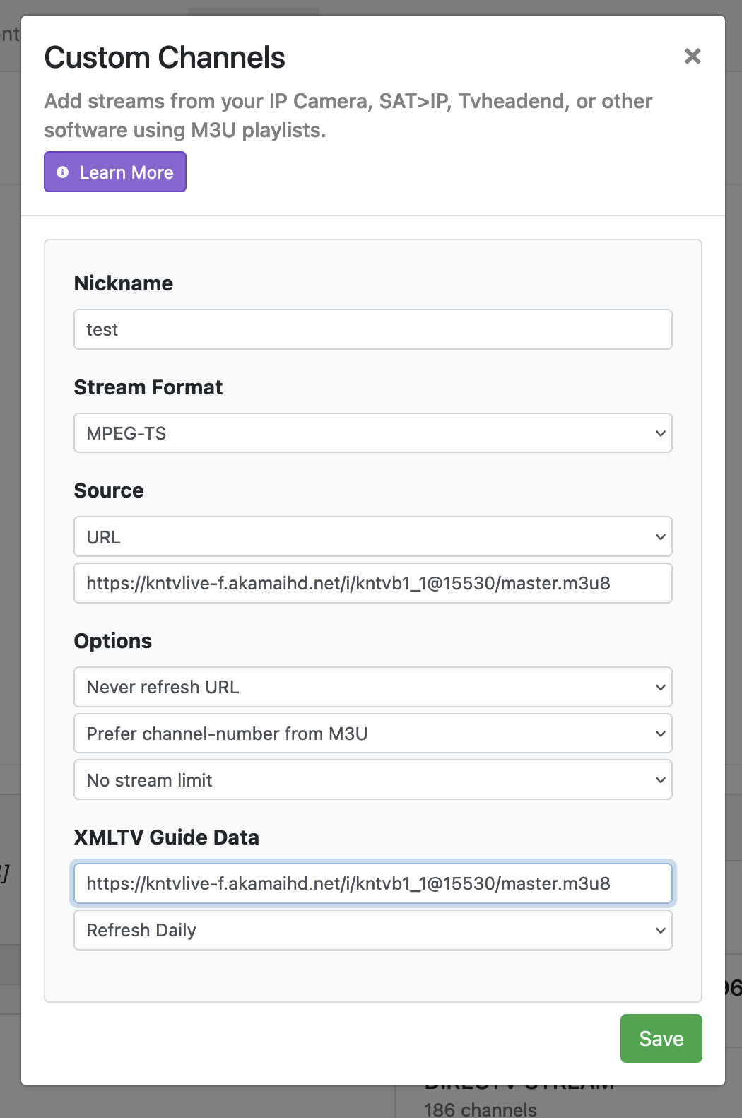 Is there a "for idiots" guide to setting up custom channels? I just cant seem to wrap my head around this. I am follwoing the steps on the help section and tried adding one of the example webcam things on the " Example M3U Playlist" on the main page but it just keep getting this error.