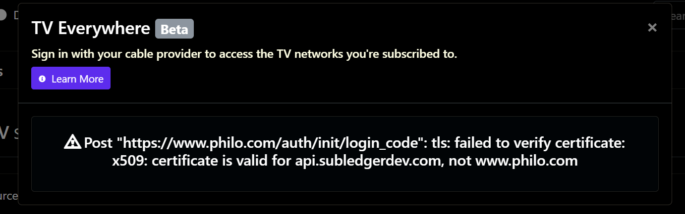 [HLS] Couldn't generate stream playlist for ch6101-dANY-ip192.168.0.4: TVE: adobe auth reg code: no login form found