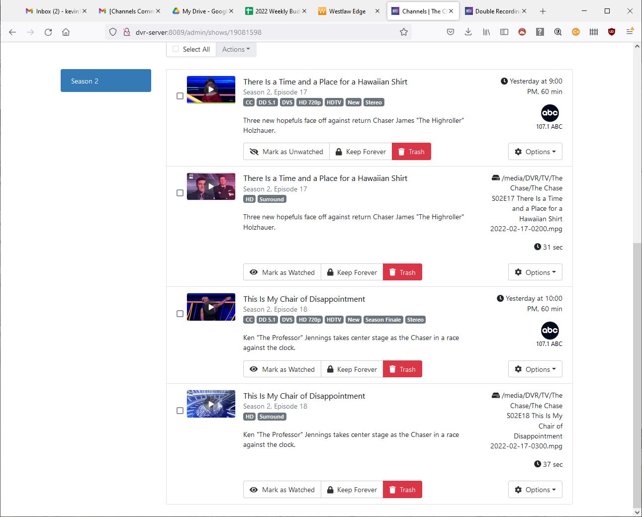 I built a DVR using a new Raspberry Pi, Channels' OS for the Pi, and a new hard drive a month ago. Most of the time I have something scheduled to record, a second recording of the same item shows up with a length between 0-2 minutes. It happens both on ATSC 1.0 and ATSC 3.0 channels. Fortunately, one of the two recordings is the full length recording of the program. Is there away to stop channels from creating the second, short recording?