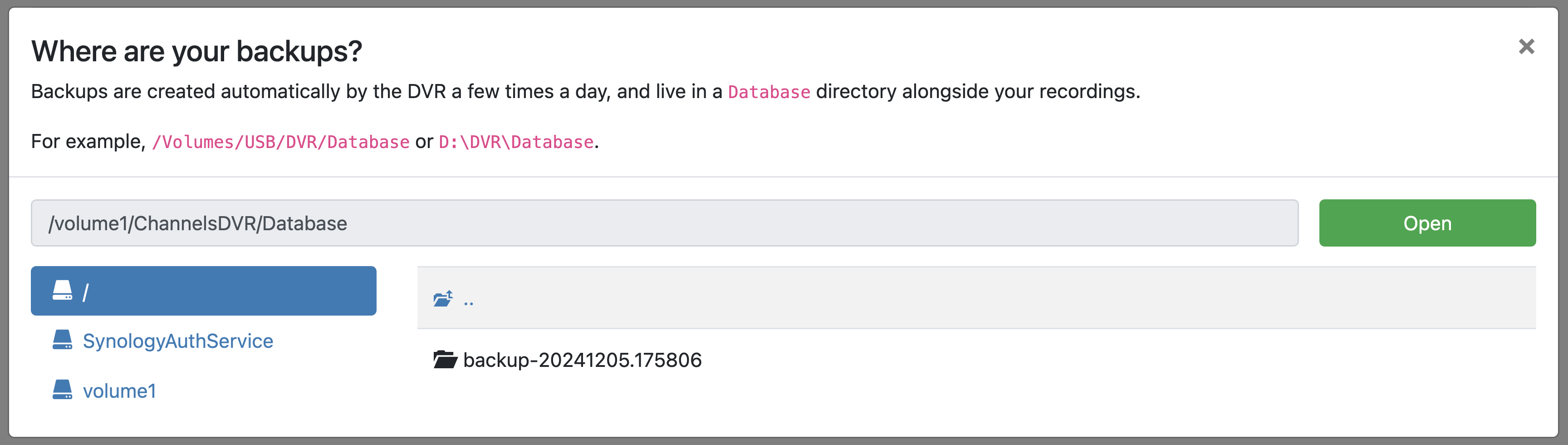 I'm trying to follow the instructions at Channels Support - How do I move Channels DVR Server to a new computer?. Are these NOT the right instructions. I went through each step, and get to a folder called backup-20241205.175806 that I can do nothing with. I can see inside that folder and find 2 .db files, but you're referring to folders, of which I only see one (above).