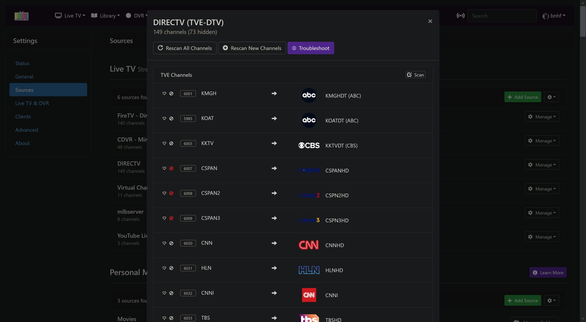 There's only one CNN for example in there, even though I have CNN available from a number of sources. If I create a pass to record a show on CNN, it'll record from whichever CNN is the highest priority for recording, and then fallback to next highest if there's a failure.