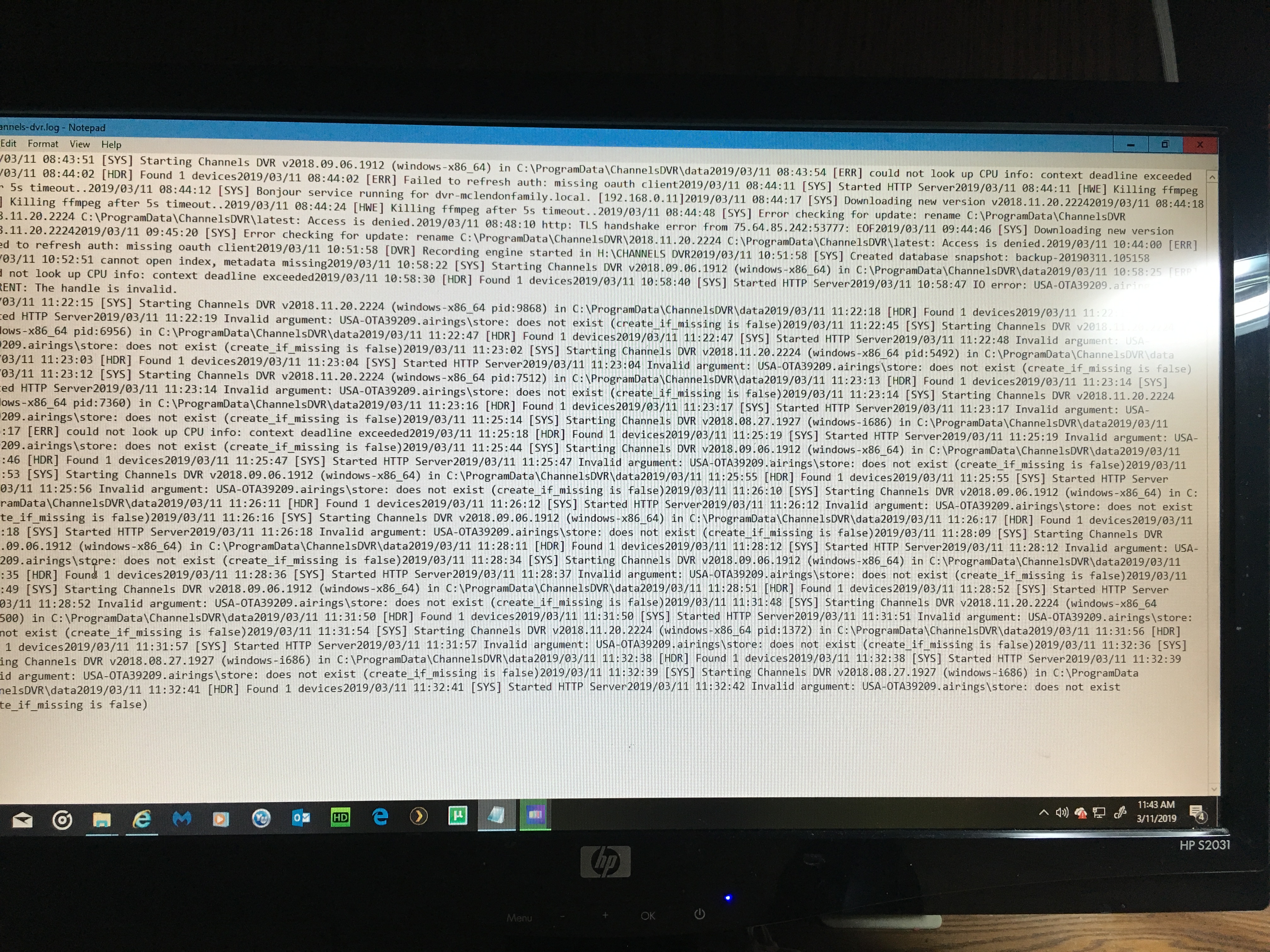 Uninstalled channels renamed the folder then reinstalled. Still no go. Here is the log after reinstall.