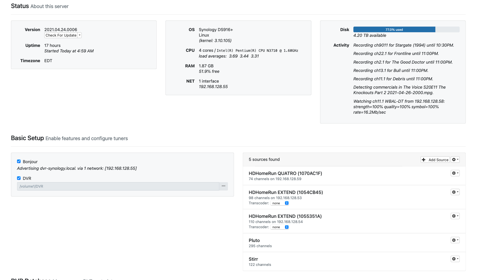 I have a script that restarts Channels-DVR every day at 4:59AM. And, since the volume is btrfs, I delete home directory snapshots and run a defrag every 6 months or so. All of this fine-tuning took some time to figure out, but would be interested if anyone else running a similar NAS has any other tricks.