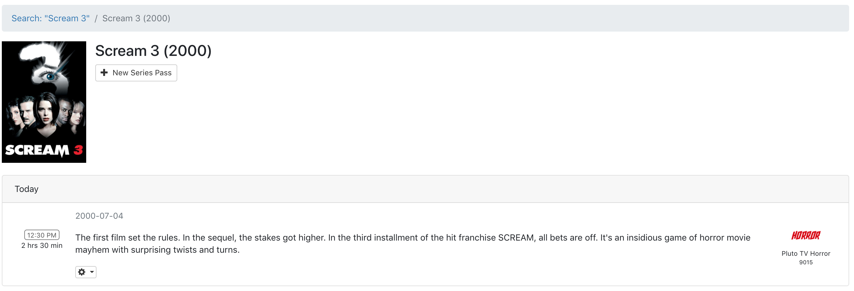 Movies that are imported using "Pluto for Channels" seems to appear with "New Series Pass" option in the Search result. Movies from OTA channels seems to just show the movie description. See below screen shots. I would expect the "New Series Pass" should only appear for series and not movies?