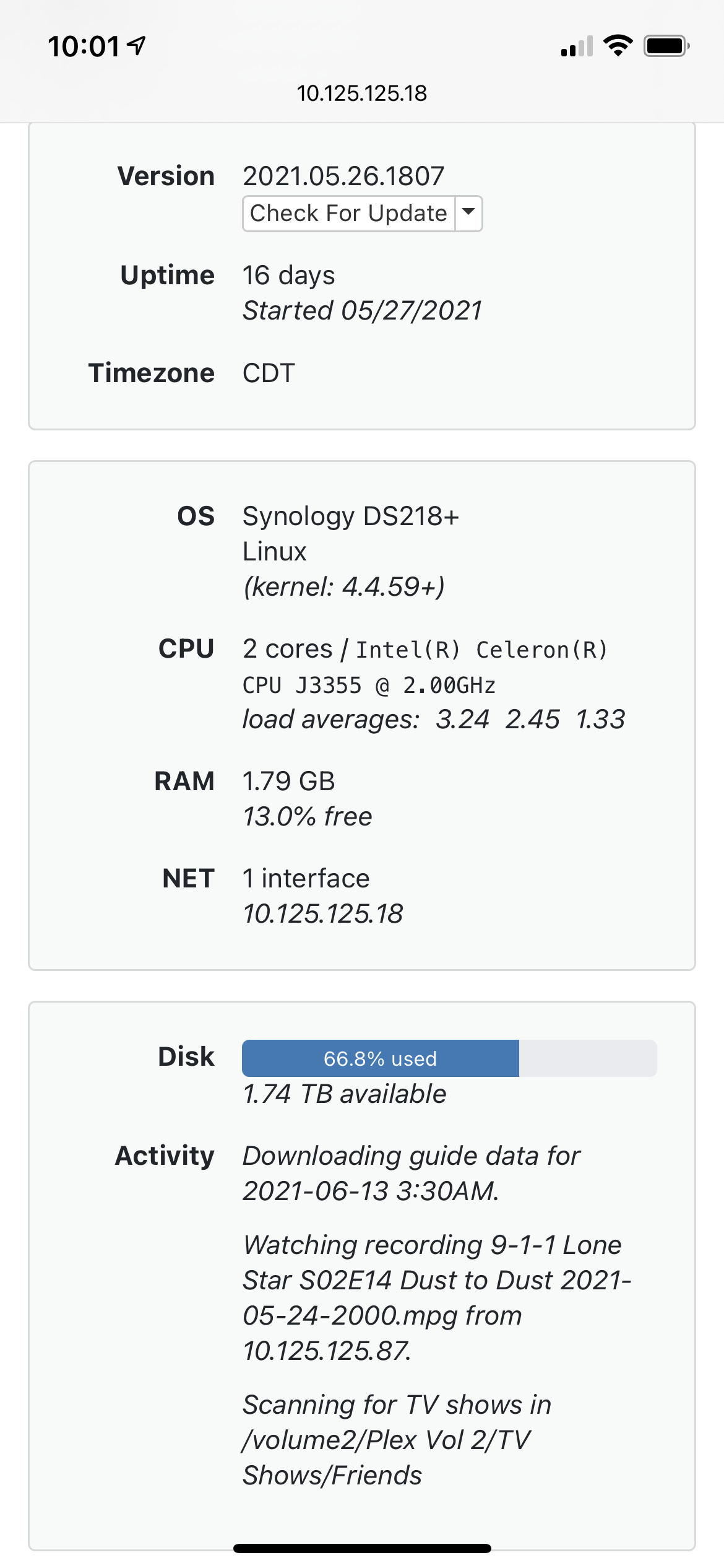 Not sure when this issue started, but I first noticed it yesterday. During my daily guide download/update process, my DVR server is being pushed to the limit memory wise (as far as I can tell), which is causing the whole DVR system to grind almost to a halt. DVR is running on a DS218+, and has been for at least 2 years, and I’ve never seen this issue before.