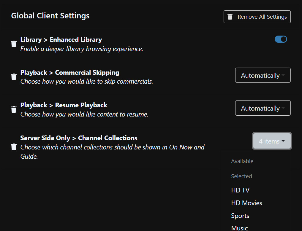 One of my AppleTVs (tvOS) shows the Enhanced Library channel collections but the guide data never populates in them. Any thoughts for something to try to make them show guide info? it works on my phone (iOS) fine. If I navigate to Favorites or HD channels, those are populated as well on the AppleTV.