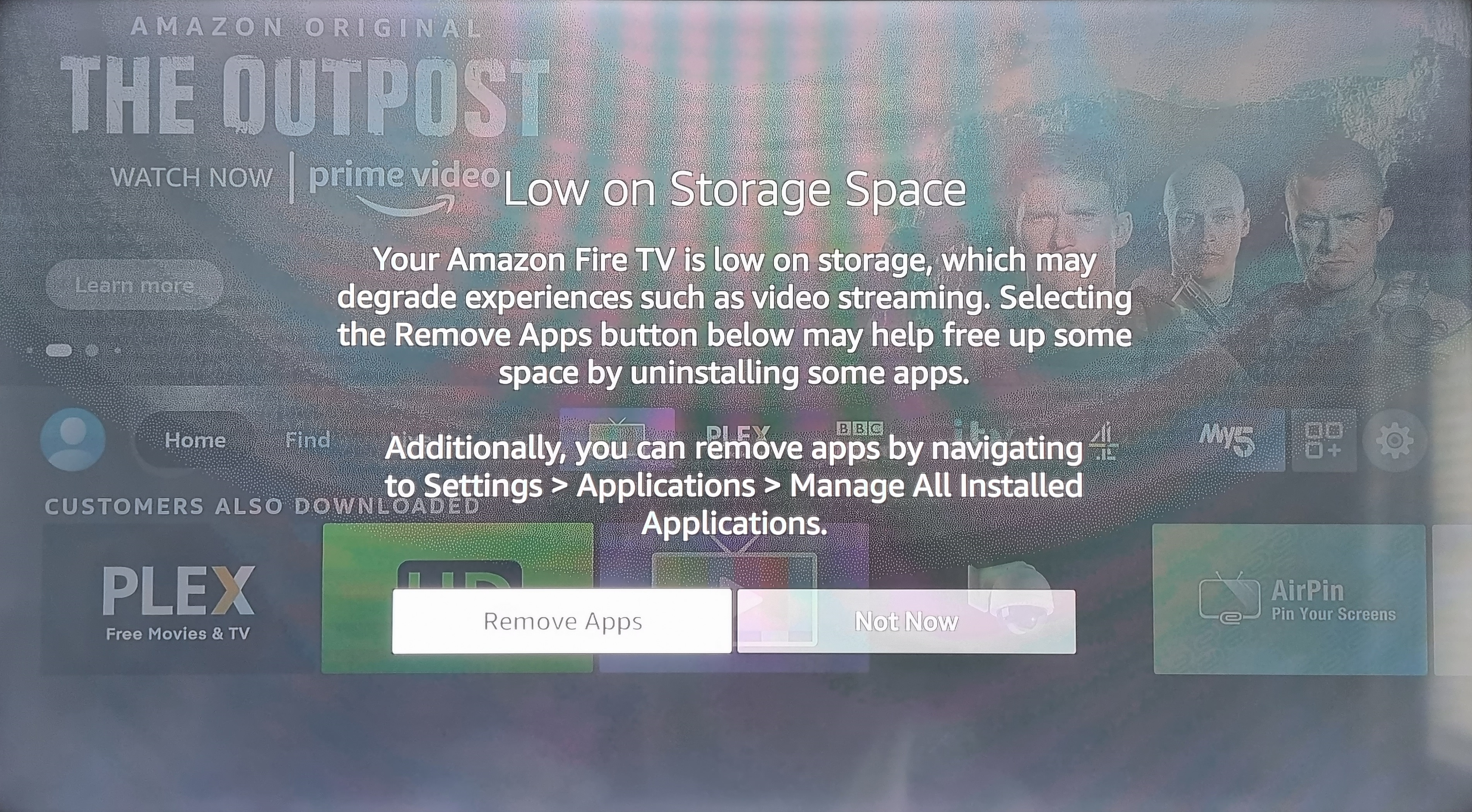 I was watching live TV last night and received an error message on the screen. I am not certain of the exact verbiage, but it was words to the effect of the 4k Firestick being low on memory with the suggestion of freeing up memory/storage.