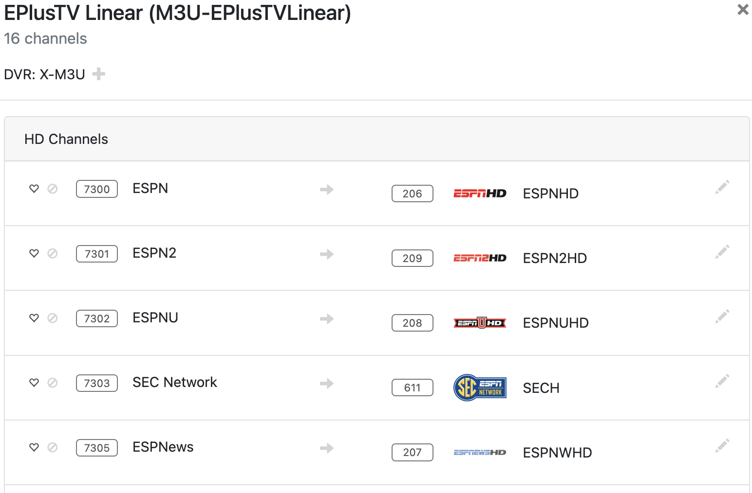 My E+ channels are working, however the guide only shows the network name, and no info about hte games/shows. I've rebuilt the EPG in E+TV and in CDVR I've reloaded the M3U and refreshed the XMLTV but same issue.