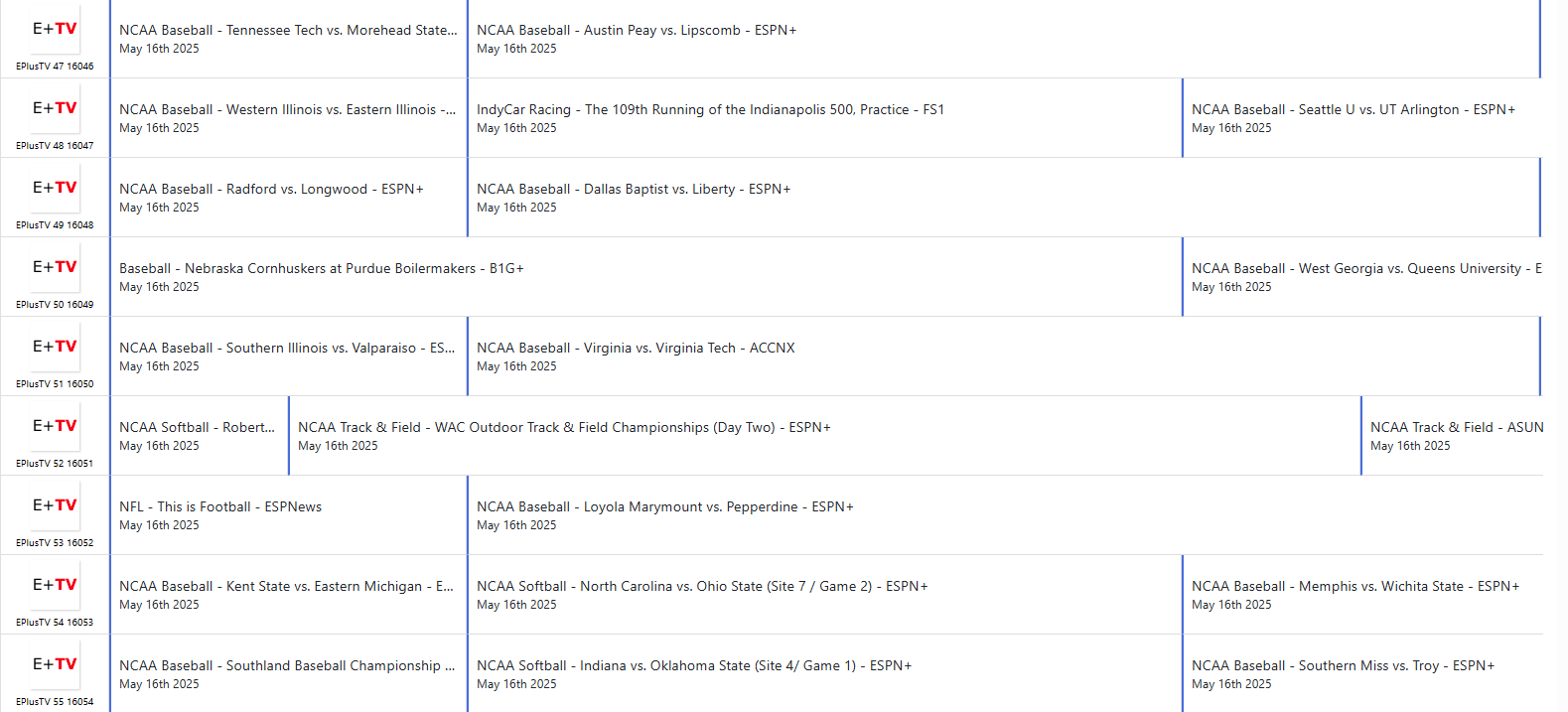 If it didn't come through from the regular FOX guide then E+ won't have it. I am on vacation so I won't be able to add it in time