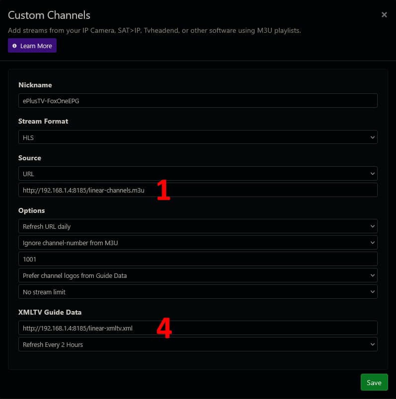 I add a custom m3u source to Channels DVR with the following settings