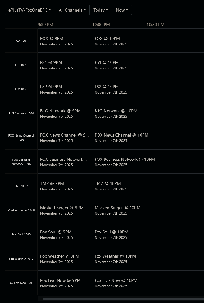 Problem with Fox One Linear channels and XMLTV guide data.