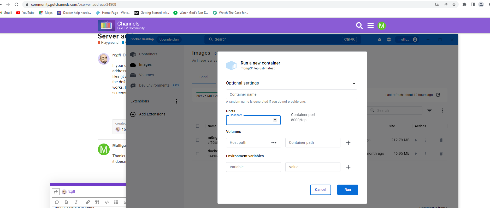 - Under Volume, I navigate to the docker/eplustv and select.