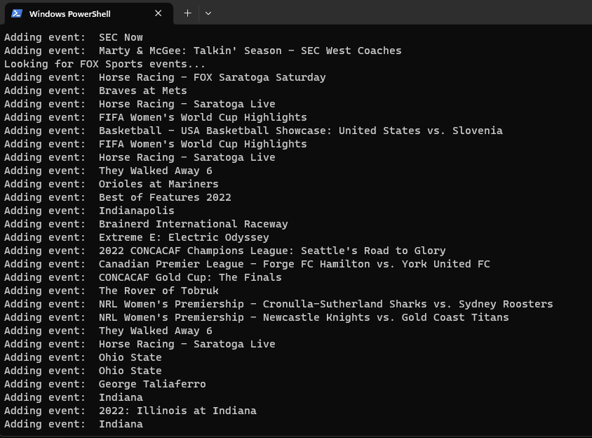 But when I start the container it just looks for ESPN Plus events and ignores the Fox variable (I only want Fox).