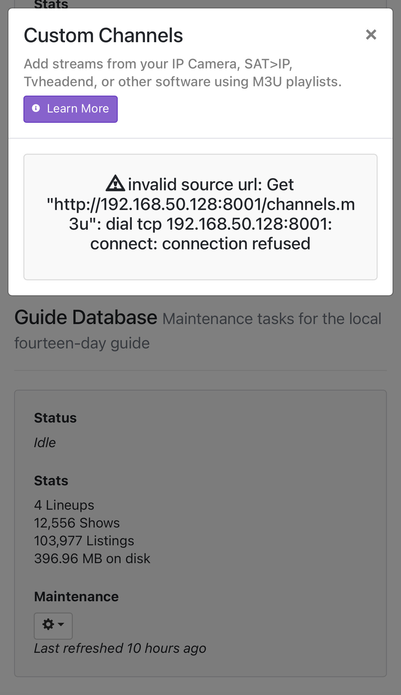 2023/08/31 20:15:50.287190 [ERR] Failed to start stream for ch10001: M3U: Could not fetch playlist: 127.0.0.1:8001: get: http://127.0.0.1:8001/chunklist/2/gpmWCZUd.m3u8: 404 Not Found
