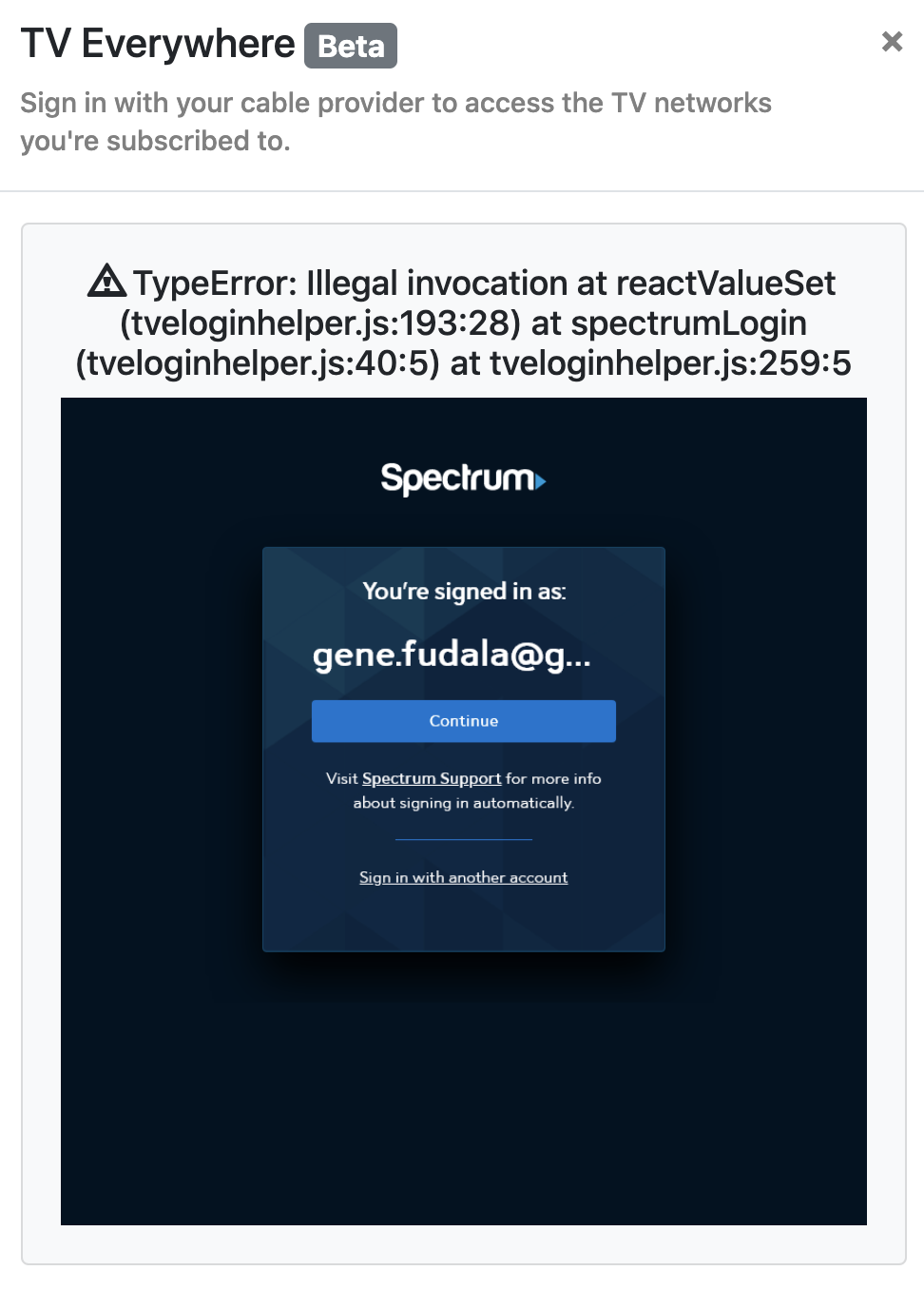 You may have to remove and re-add the TVE source to correct this. I think that has worked for some other users experiencing that error recently.