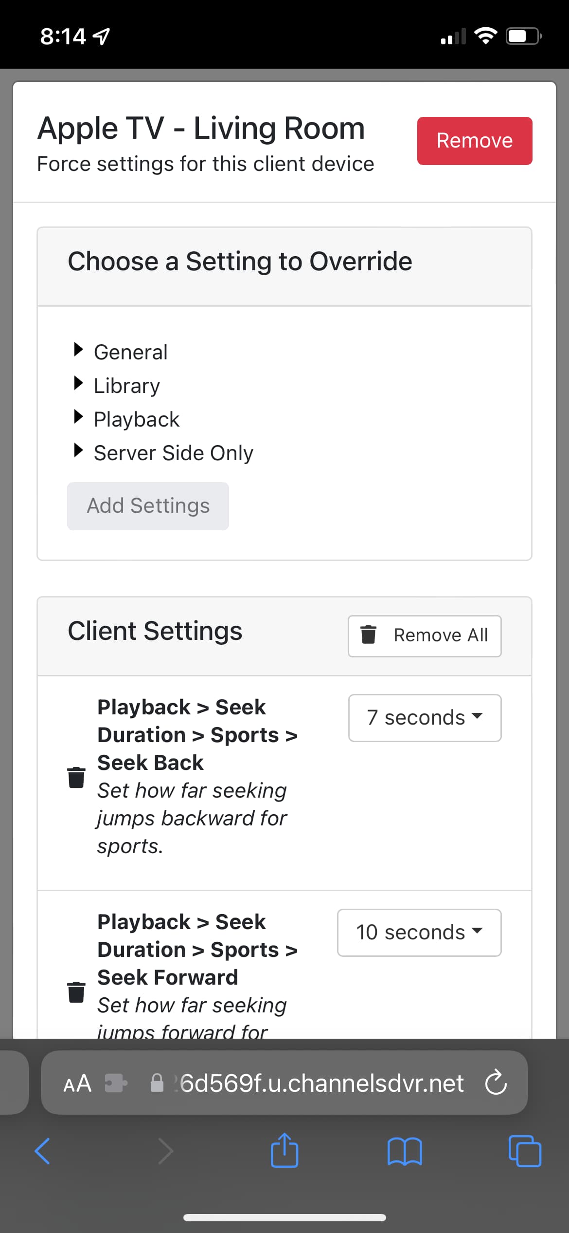 I noticed a small issue when changing client settings from a mobile browser tonight. There is no way to get out of the screen below after adding a setting to a client. An OK or X button is what I was expecting to see. Again, not a big deal but thought I would point it out. I’m using Safari on iOS 15.6.1.