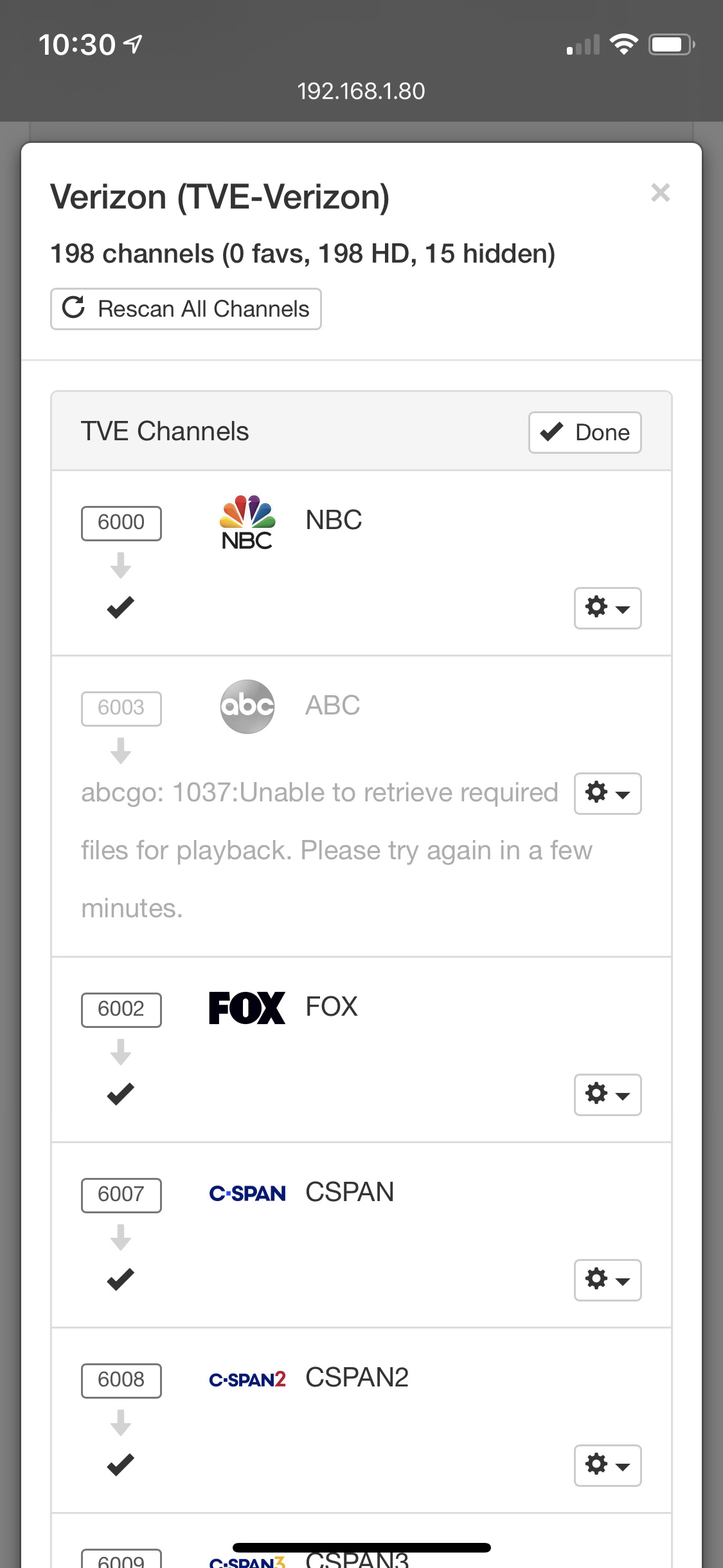 How do I get this to rescan. Fox is not showing up however when I go to the link I am able to watch with no issues. In addition ABC shows as an unimplemented channel...