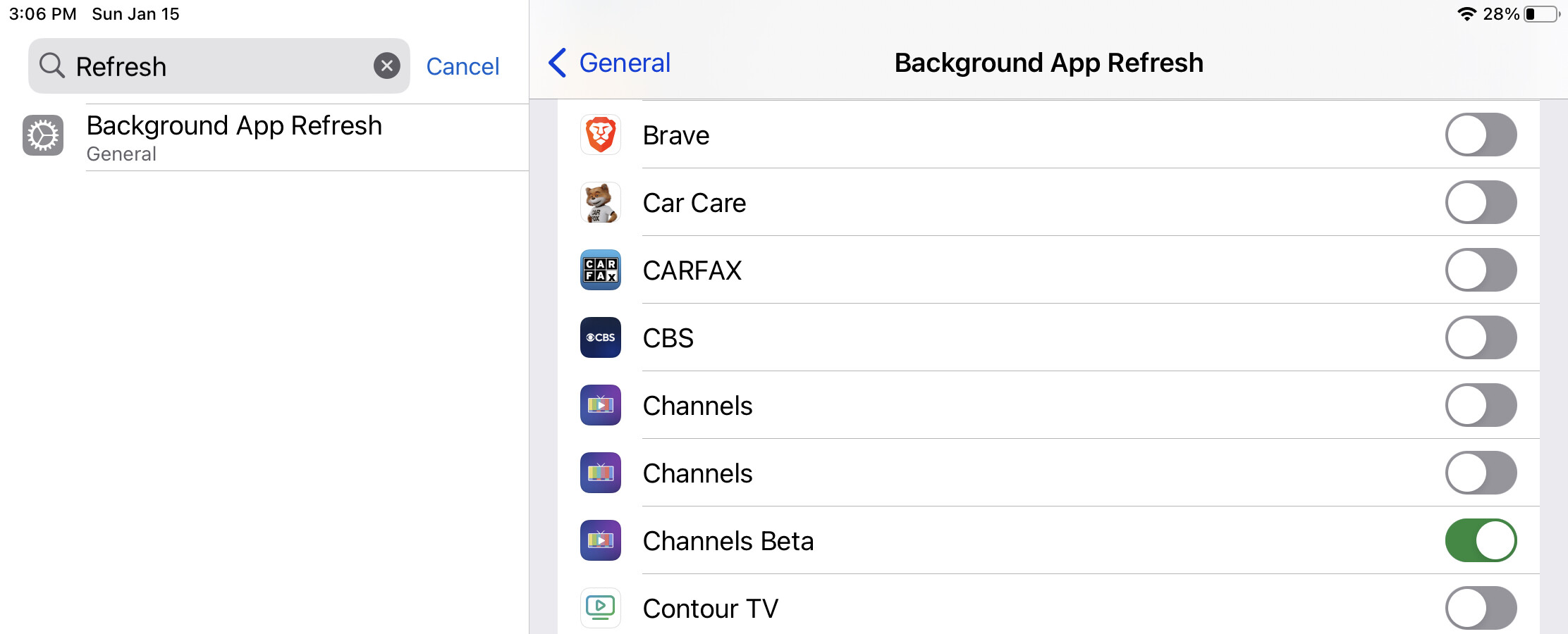 I just noticed this. Any ideas why I would have an extra channels app displayed in background app refresh settings area?