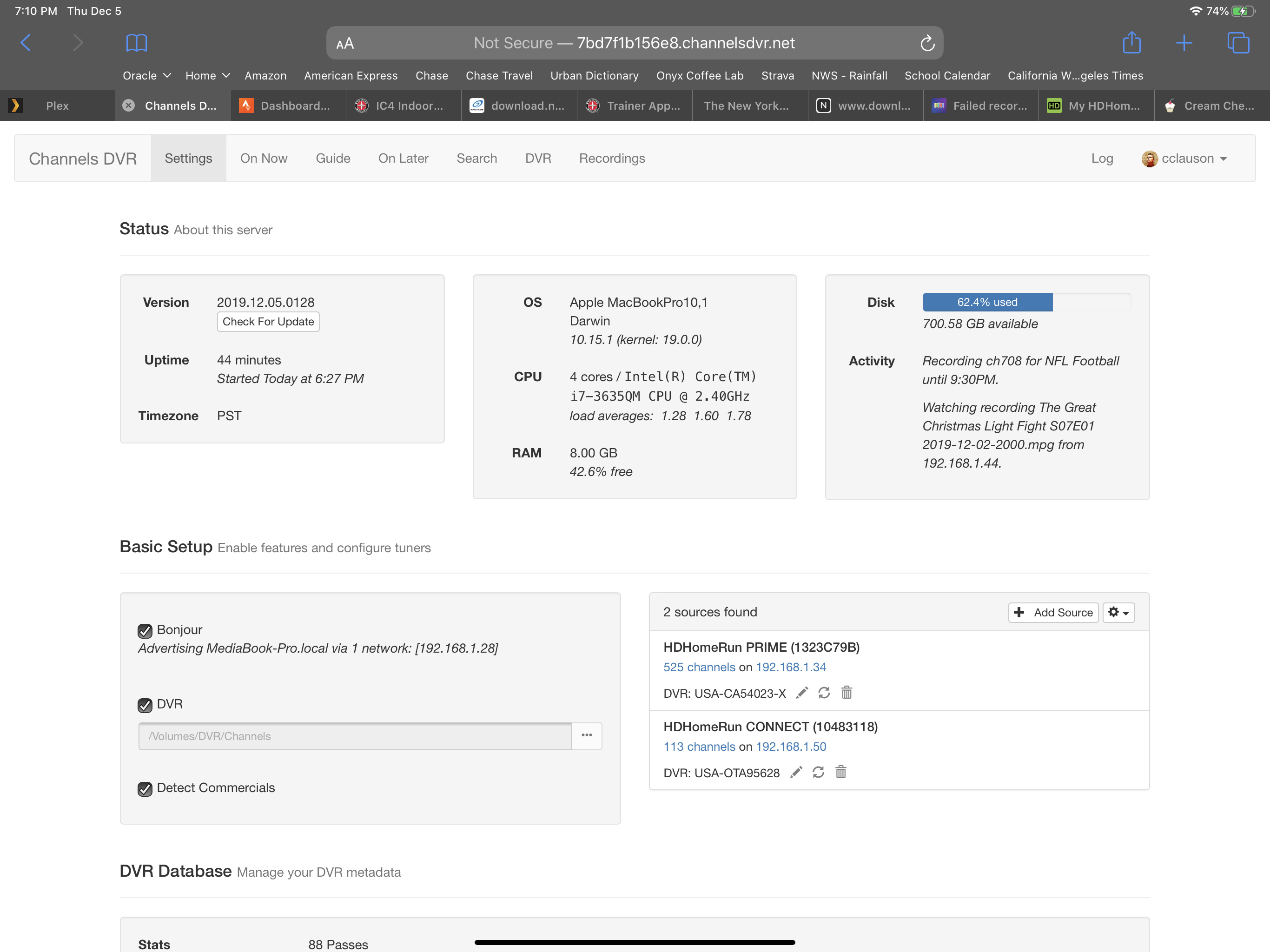 Does the log show messages like "Starting Channels" recently? That would show if it's being turned off and back on for some reason.