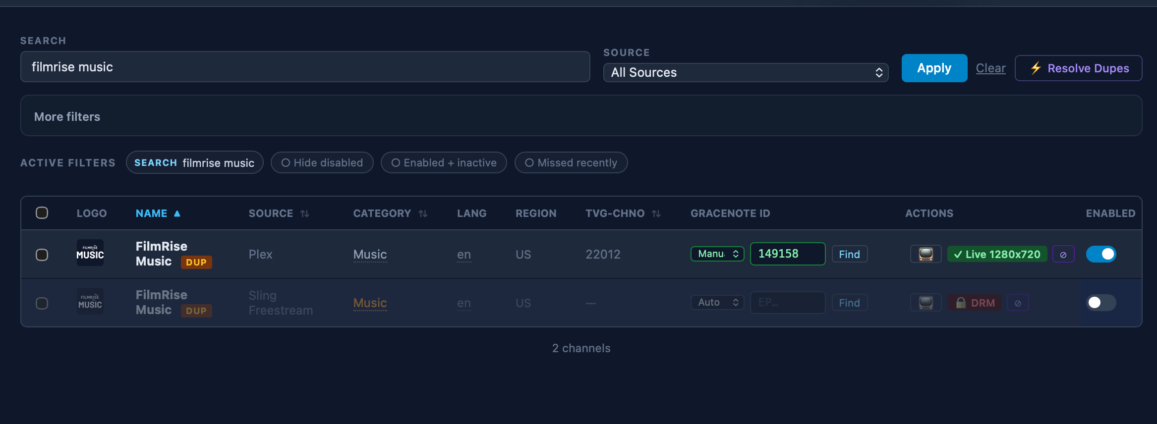 What's the best/easiest way to fix a time-shift problem? One of my favorite channels integrated by this project into Channels DVR is FilmRise Music, they have a great selection of concerts playing! The guide data is rich and populated BUT as best I can I tell it's off by three hours, so nothing's matching up.