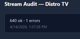 2026-04-14 13:25:12,639 INFO app.worker: [audit] distro: checking 641 channelsβ¦