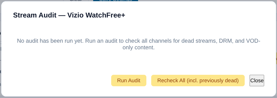 I have updated to v3.2.0. It seems that I am not able to perform a stream audit on the new Vizio Watch free+ source. When I click the Run Audit button, nothing launches.