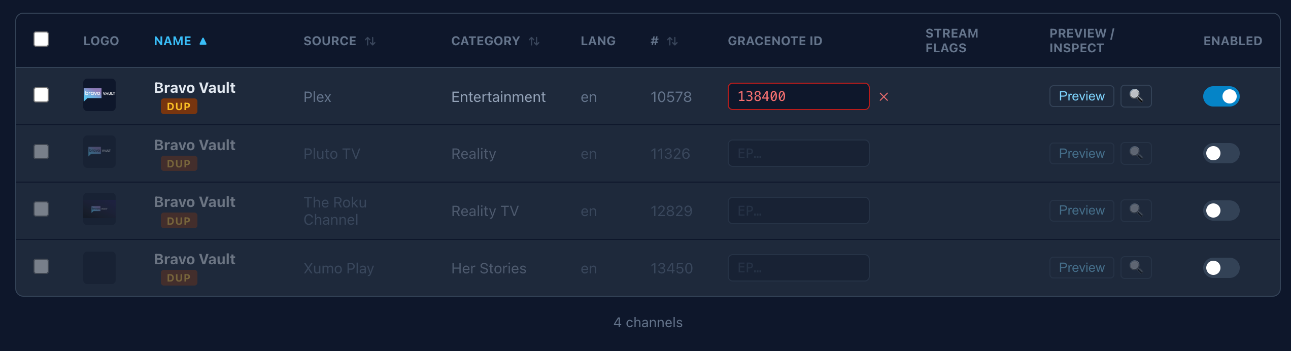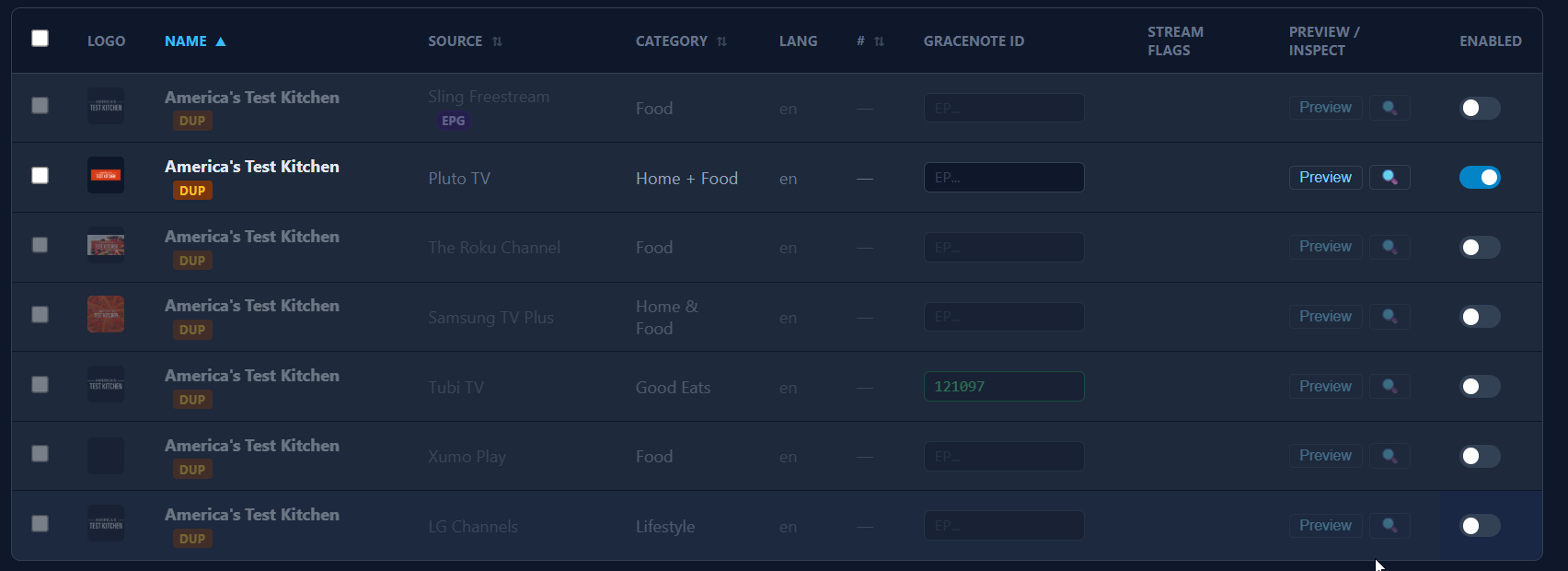 Like, i want to check a box, to disable an entire category at once, like all Sports, News, non English, Heath, Food...etc channels. Inside each source channel list.