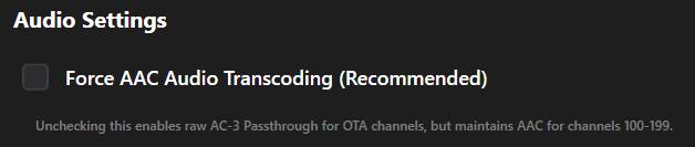 I assume it's making Channels DVR transcode the audio before Feral HTPC gets it?