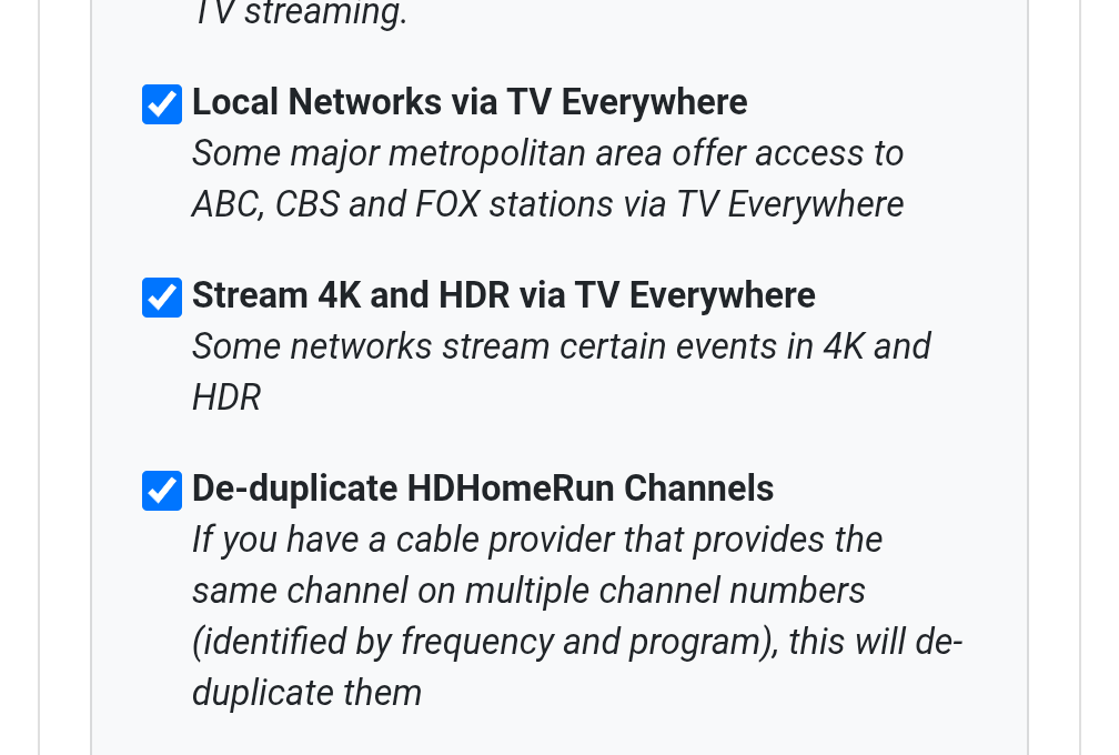I'm wondering why none of my other clients (Android phones, Nvidia Shield, Web Client) don't show the duplicate channels, but they show in the Feral one. I tried the de-duplicate setting, but it made no difference.