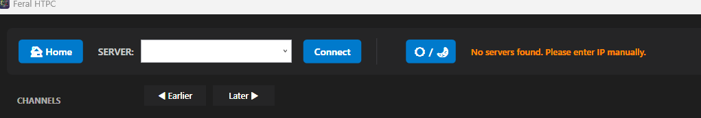 When i open the Live TV page it finds no servers and the dropdown menu has no ip in it.