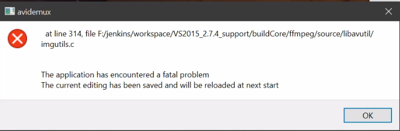 I keep getting a lot of the following errors. These keep occurring after I make some edits in the .mp4 file created by MCEBuddy or when I edit the Channels DVR mpeg file. The edits I make before the error were cuts of commercials missed by MCEBuddy. This keeps happening as I scroll through the frames in AVIDEMUX. I get the same error message referencing a line 314 every time.