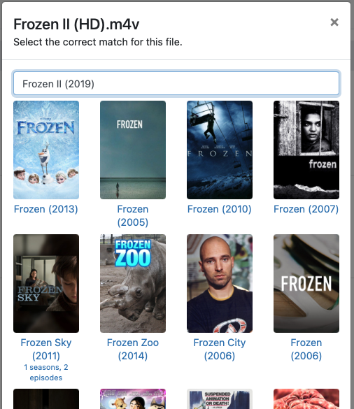 I have movie, Frozen II (2019) and it is not being found in the match search box.