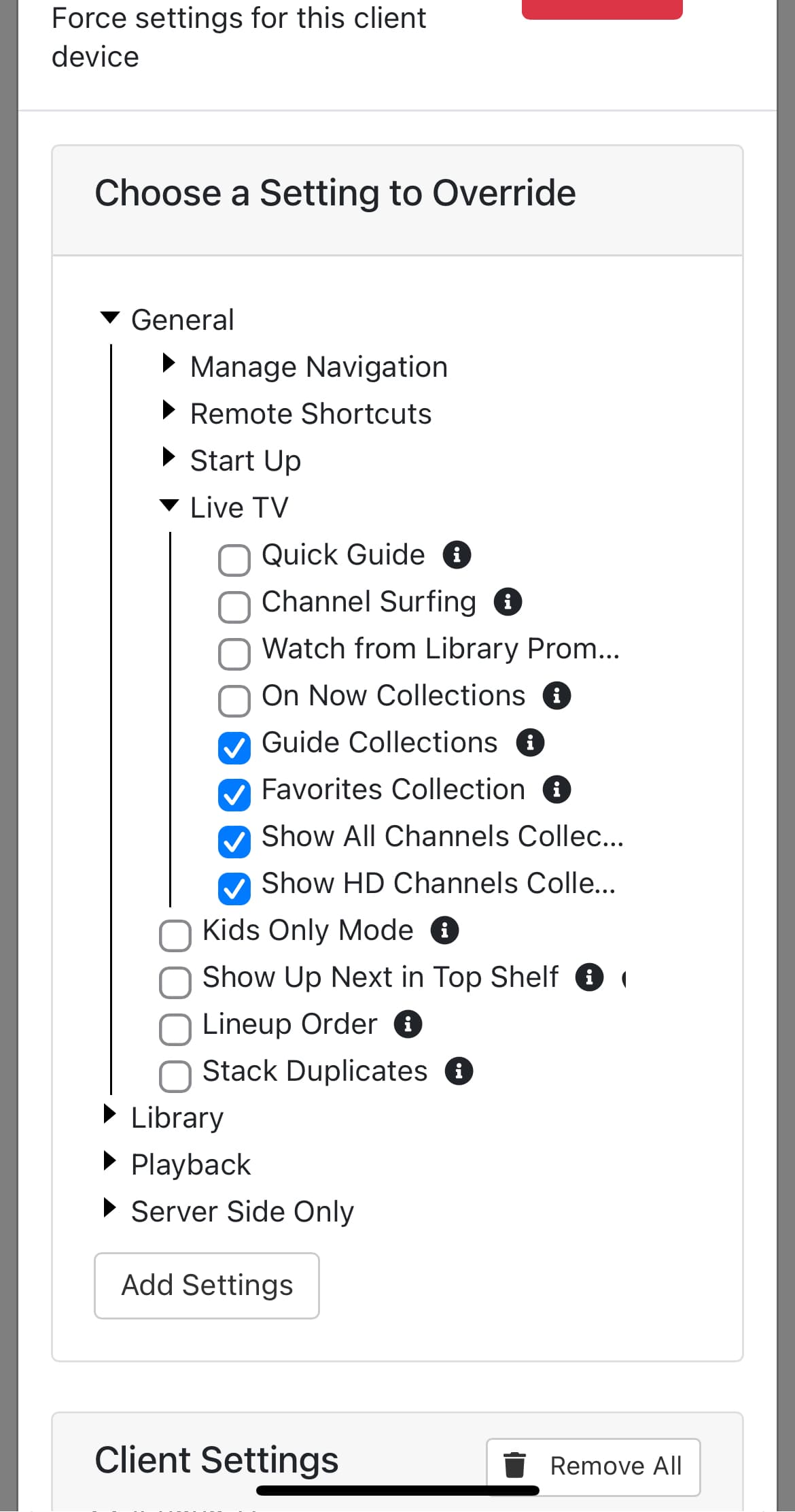 It's great to be able to completely hide the collections from the guide navigation, but it would be wonderful if one could force a particular guide collection back onto the client, from the server (in my case it would be "Favorites"). Since if you hide the collections navigation from the guide via the server, there's no way to go back and change the client collection if it somehow reverts to "All channels"