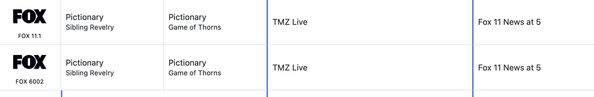 According to what i'm seeing here, Fox 11 isn't on TVE.