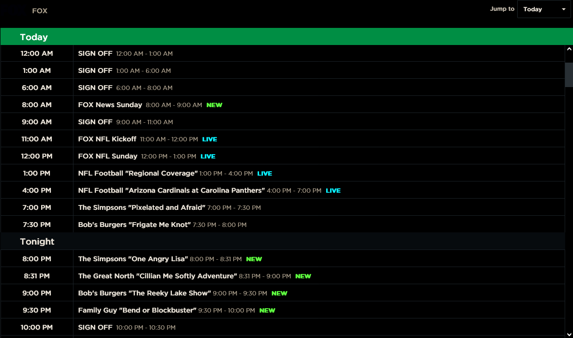 If any of you are getting primetime streaming only on channel 6002 (because your local Fox station isn't Fox Owned and Operated) like me, you should see the same schedule at zap2it.com for the generic Fox channel in your time zone and your Channels DVR guide for 6002 Fox. If not, let the developers know. That's how it's "supposed to work".