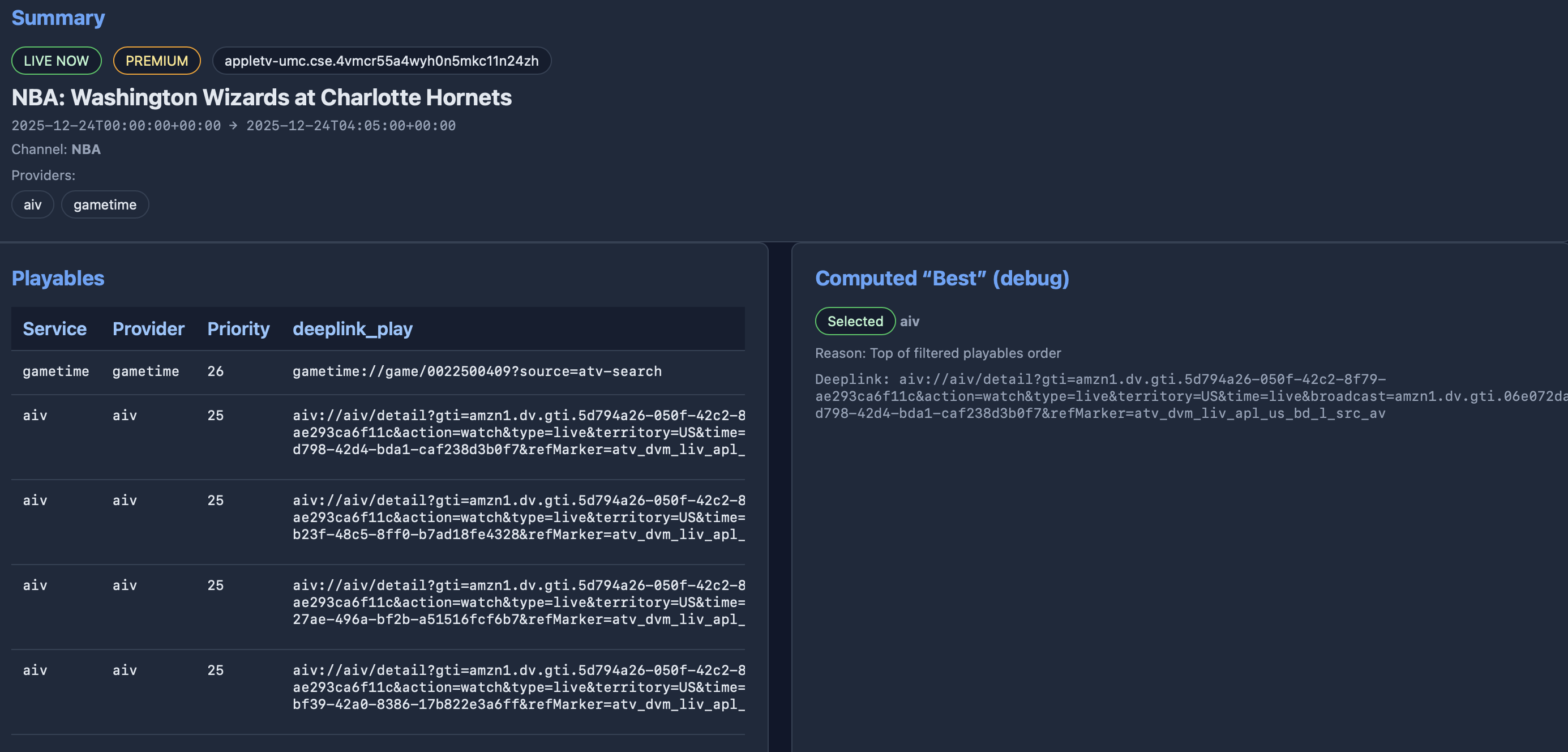 Also, other note, the NBA app has a watch live button that needs to be pressed on the splash page for the event, if you are interested in taking that one on too. Otherwise native show tuning process configurations seemed to work.