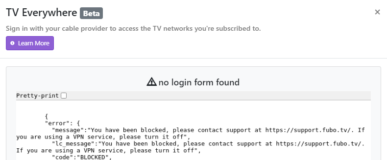 In the fubo login it throws this error, I think it was the end of getchannels on servers.