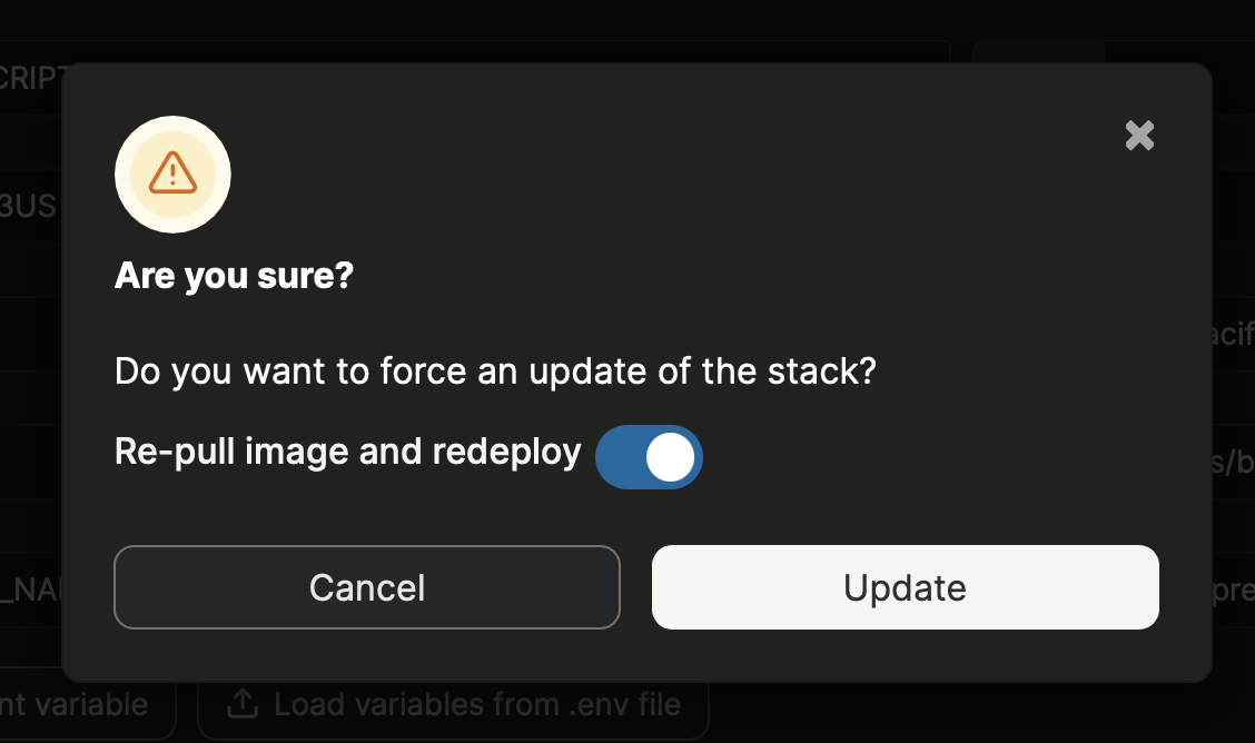 Did you Re-pull and redeploy when you updated those env vars in the Portainer-Stacks Editor? That's how you get the latest version of a container if a newer one is available...