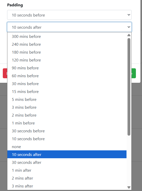 Not sure if you all are aware, but when I set global recording options (buffer time), I get seconds intervals and then 1, 3, etc) minute options to consider.