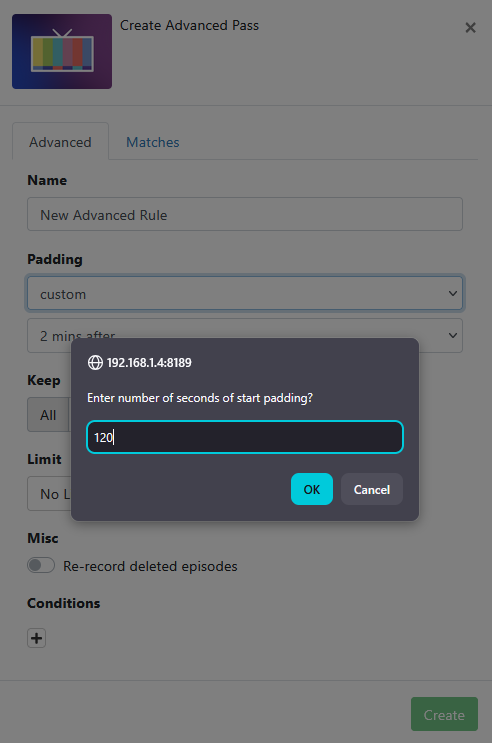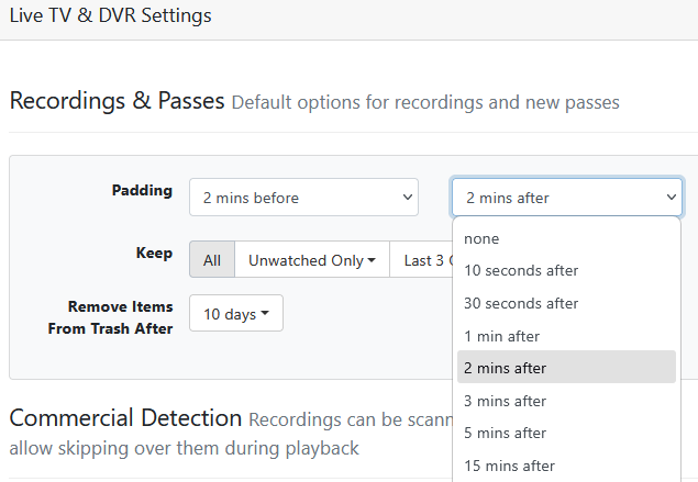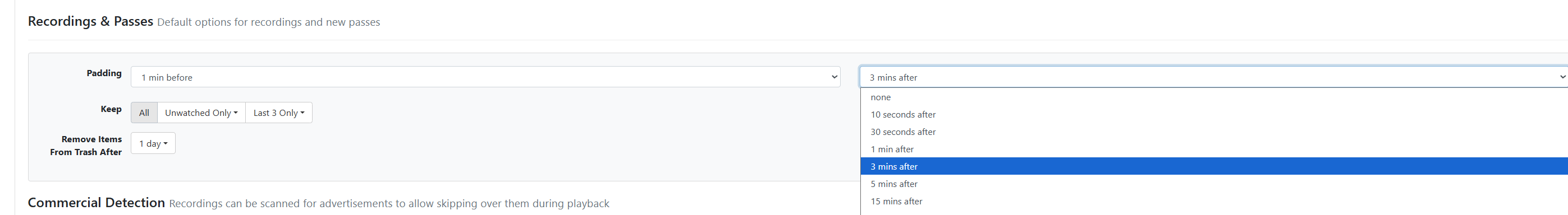 However, when I go into the pass itself to modify, I am able to select more granular time slots (1, 2, 3, etc minutes). Use of ADBtuner and some Fast Recordings through other sources sometimes the timing with 1 minute isn't long enough but 3 minutes if overkill. I'd like to be able to use the 2 minute buffer globally and not have to go into each pass to update.