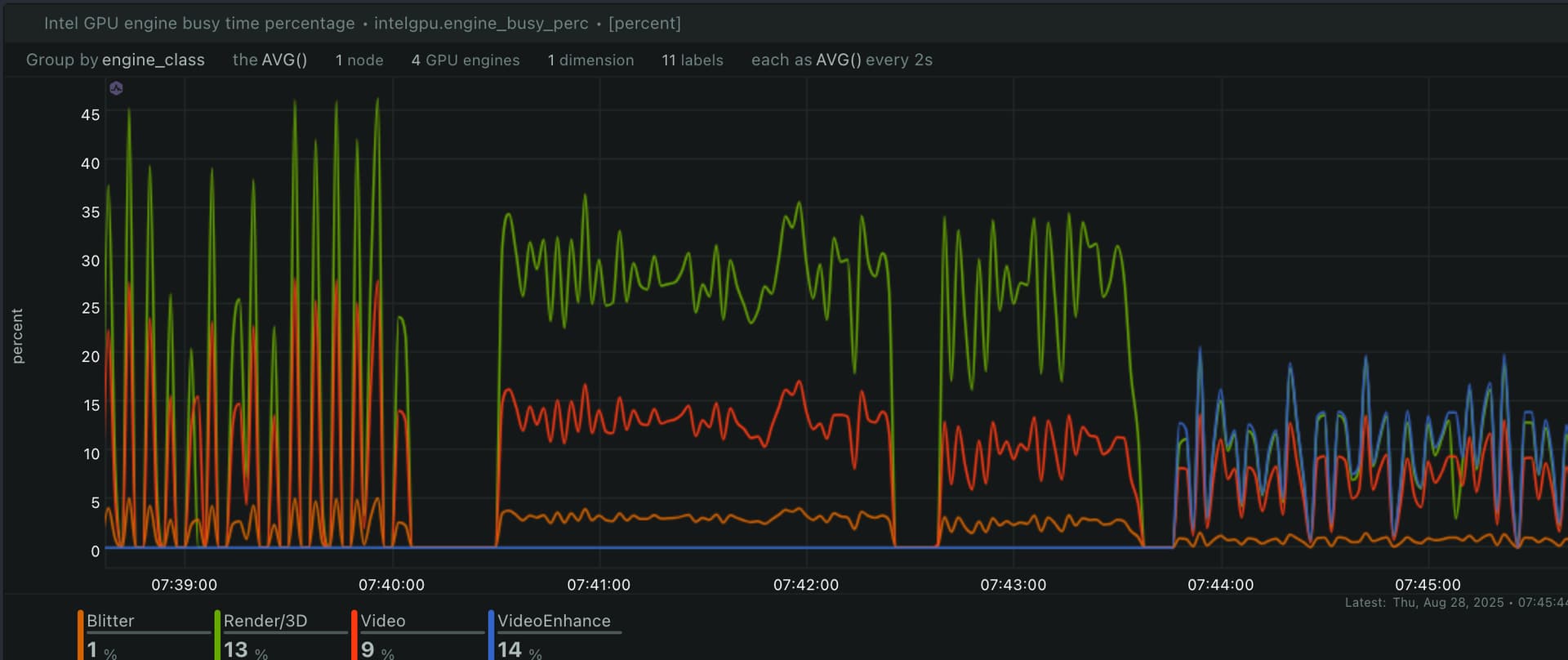 Here is my GPU performance on Beelink w/J4125 CPU as captured by netdata while watching live TV