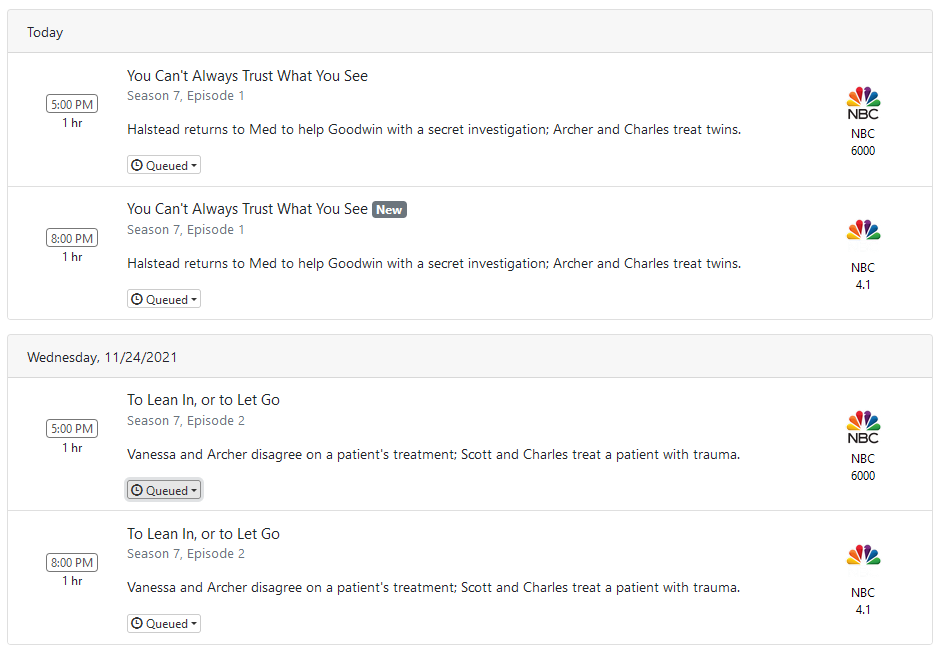 Looks like Chicago Med and Chicago Fire (Season Premieres) are listed in Gracenote as not new. They are missing the New tag (though it looks like Chicago Med is half right. Luckily I caught it to manually record the episodes otherwise I'd have a very unhappy household.