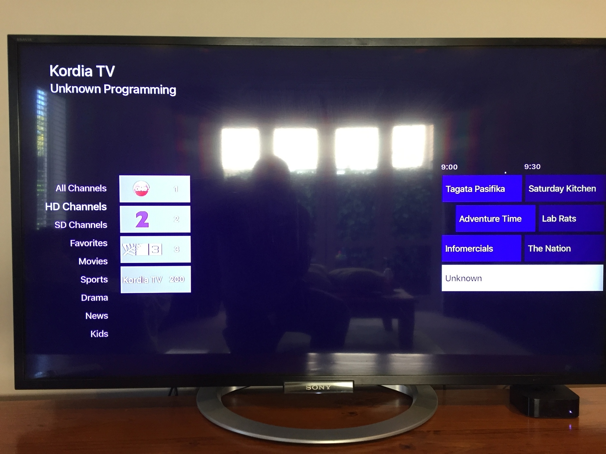 I just tried the new beta and filtered the guide to HD channels and then scrolled down to the channel with out guide data "unknown". This random issue happens in that the guide moves to the right of the screen. It will correct if I then filter by all channels and scroll down the guide list to the same channel. See attached image as may show issue better.