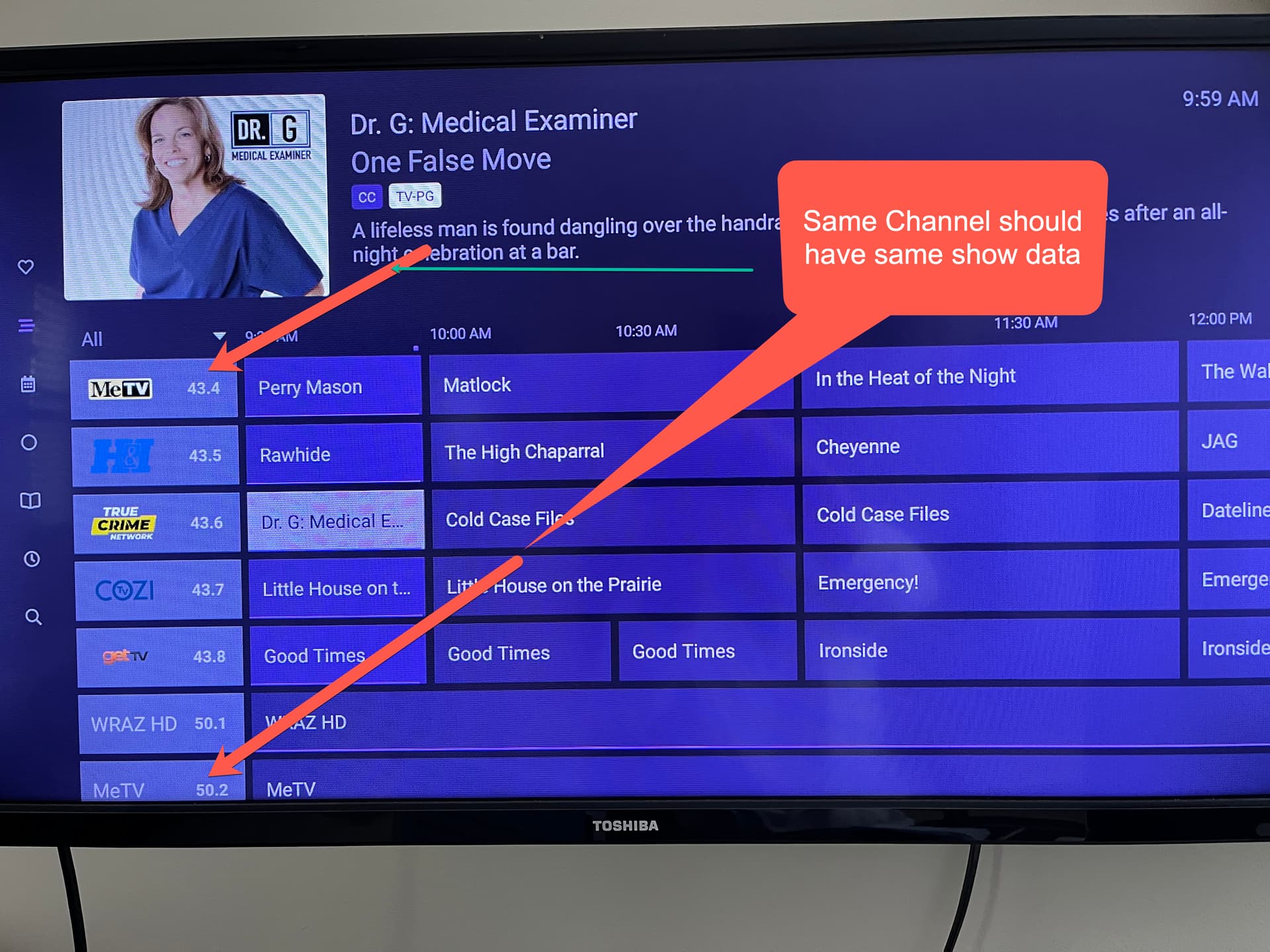 for last few days the DUO location guide simply has name of station and no details of shows OTA.... (all works well shows details of shows on quatro),