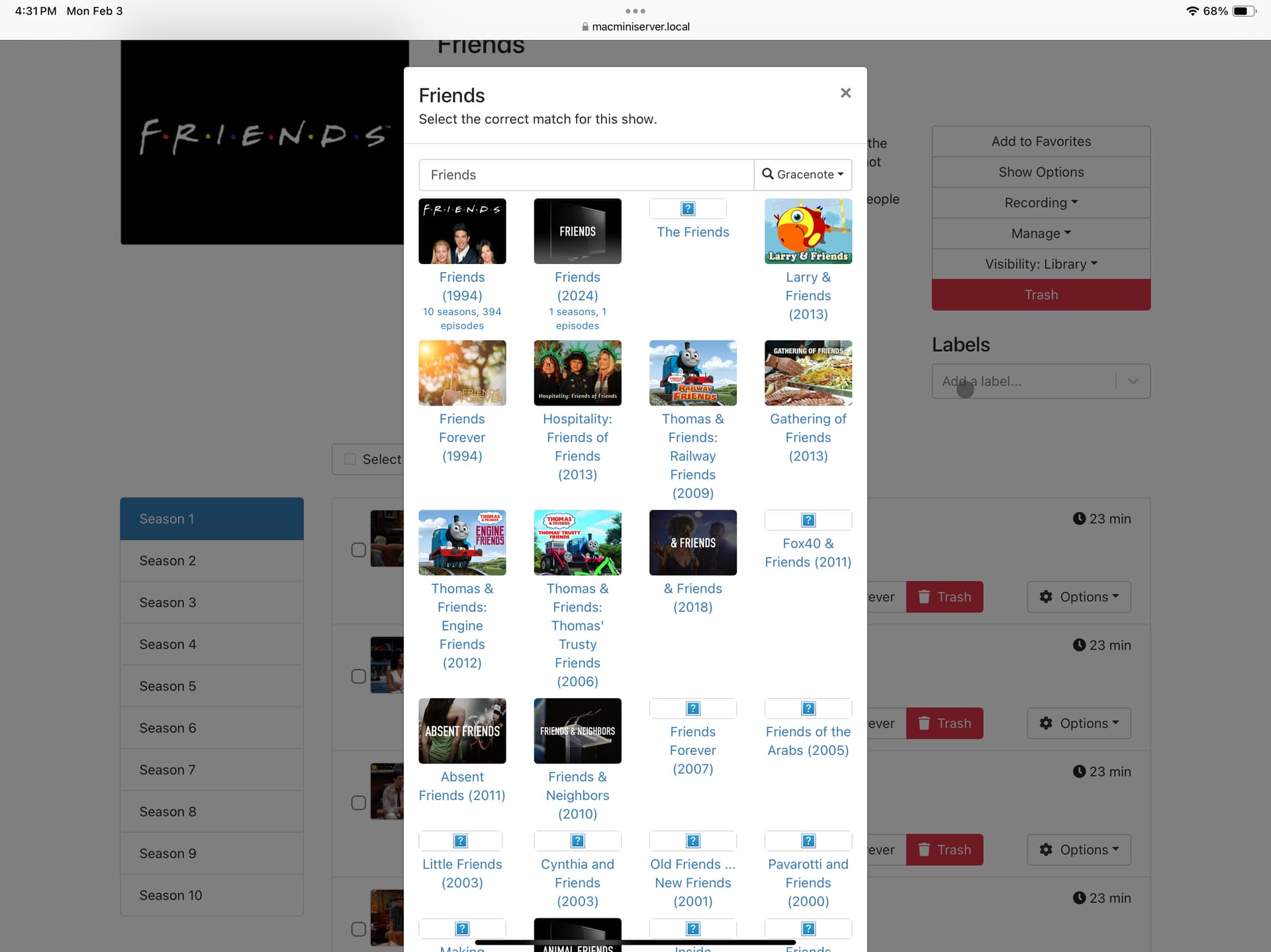 I am having problems importing TV Shows. I wonder if something is up. I know they both use GraceNote…