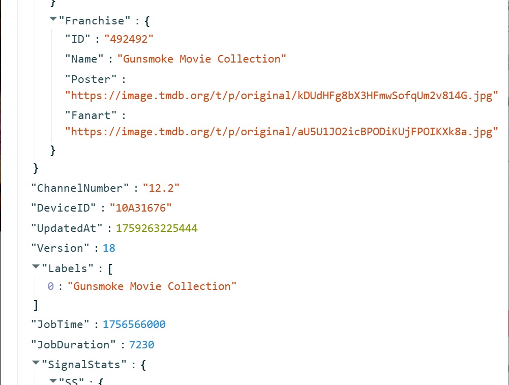 That belongs_to_collection appears in the Channels DVR files json for the movie in .Airing.Raw